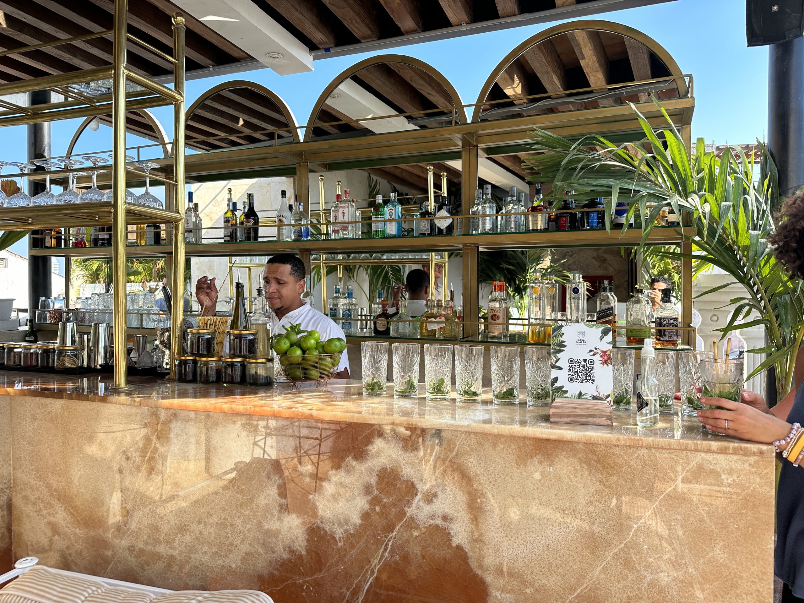 We flew direct on Spirit and had a great experience. We arrived on Thursday day and checked in our hotel. Sol De Alba was a beautiful remodeled boutique hotel in the heart of the Historical District of Cartagena. We were a large group all arriving at once and the staff handled all the baggage and check-ins very well. We were very impressed with the Hotel Lobby and Rooms. Included in this post are pictures of the hotel. The rooms were perfect size and had updated modern tv, shower, beds and closets. All the wood work and design of this hotel is modern yet still has the Historical feel. The doors and windows were very thick which helped keep the noise out at night. Cartagena is a party town and can be very loud till 4AM so its was very important for us to stay in a room not directly on the street and to have solid windows that absorb sound. Sol De Alba Hotel met all our needs and more. The rooftop had a bar and pool we enjoyed daily. The views from the top are so nice and the vibe was perfect for a Mojito or a cold beer. We had a prewedding party at the rooftop with an authentic Colombian Band and all our friends dancing and drinking the evening away. One of my favorite parts of the trip.